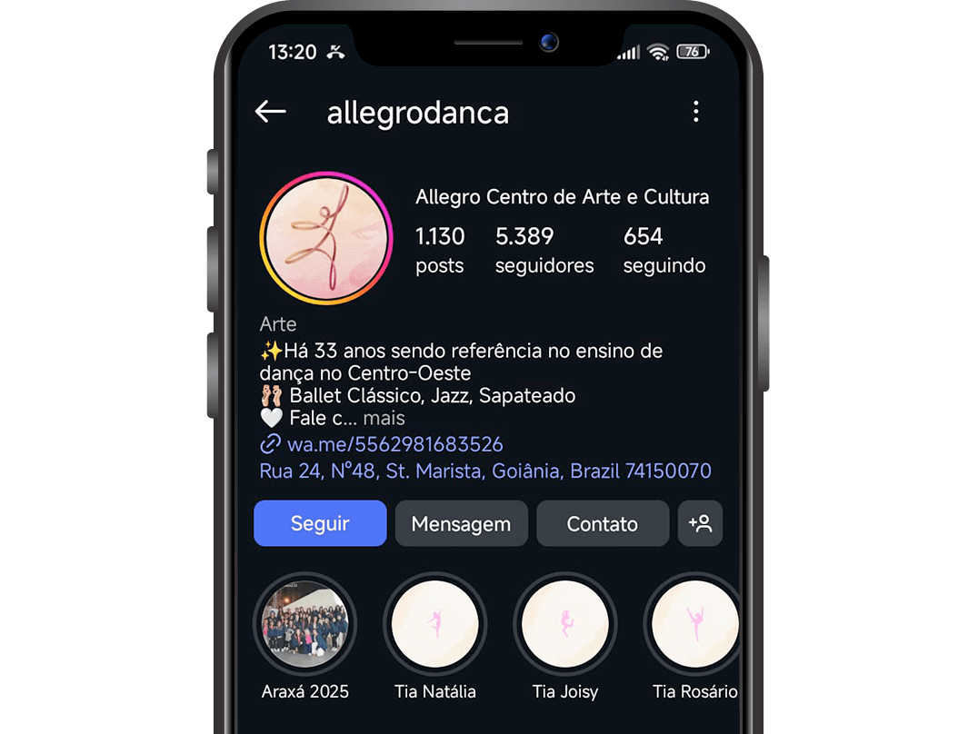 Ao longo de três décadas, formamos centenas de bailarinos, oferecemos milhares de horas de oficinas gratuitas e nos tornamos referência em educação artística e responsabilidade social em Goiás.